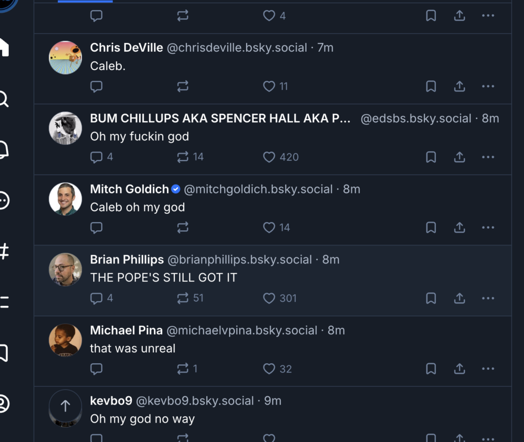 Finally – because the Niners Seahawks game doesn’t deserve any words – that outrageous game in Chicago that wrapped up the weekend. You had a frenzied Chicago crowd, you had snow and cold, you had the Bears and Rams staying even the entire night.[5] Just when it looked dire Caleb Williams made one of the greatest plays in NFL history to send the game to overtime. I screamed at my TV. I bet a lot of you did, too. My social feeds exploded.